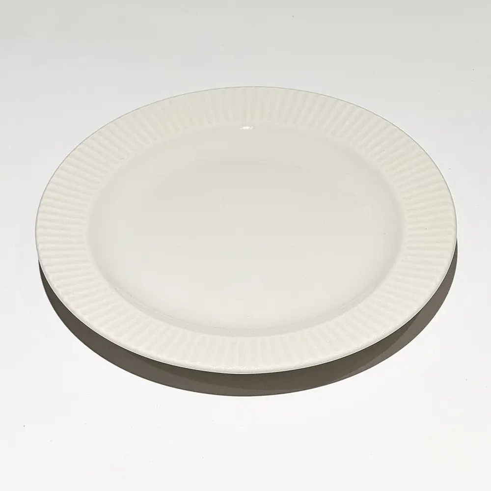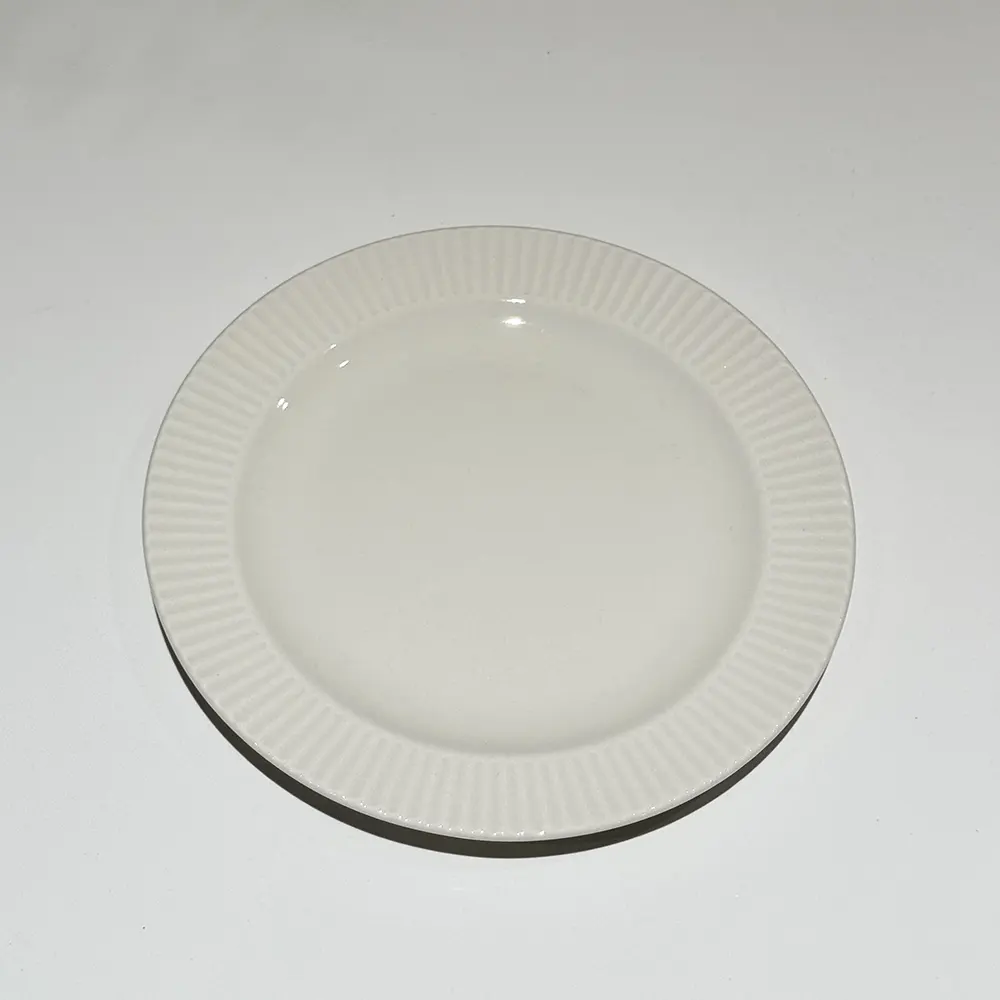 Piatto Dessert “Design” – con Decoro a Raggi Elegante e discreto, il piatto da dolce, frutta o antipasto “Design” si distingue per la sua texture raffinata e la delicatezza della sua porcellana fine. Il bordo leggermente rialzato è impreziosito da un motivo a righe in rilievo, disposte a raggiera, che catturano la luce con sobrietà e raffinatezza, donando movimento e tridimensionalità al piatto. Il colore chiaro e neutro lo rende un elemento estremamente versatile, capace di valorizzare con eleganza ogni portata, dal dessert più delicato a un antipasto creativo. L’assenza di decorazioni invasive e la forma armoniosa lo rendono perfetto sia per la tavola contemporanea che per mise en place più classiche. Stile e abbinamenti: Perfetto per essere abbinato alla collezione “Design” o accostato a piatti minimal in tinta unita per una tavola elegante ma non rigida. Un tocco di stile senza tempo, adatto a ogni occasione.