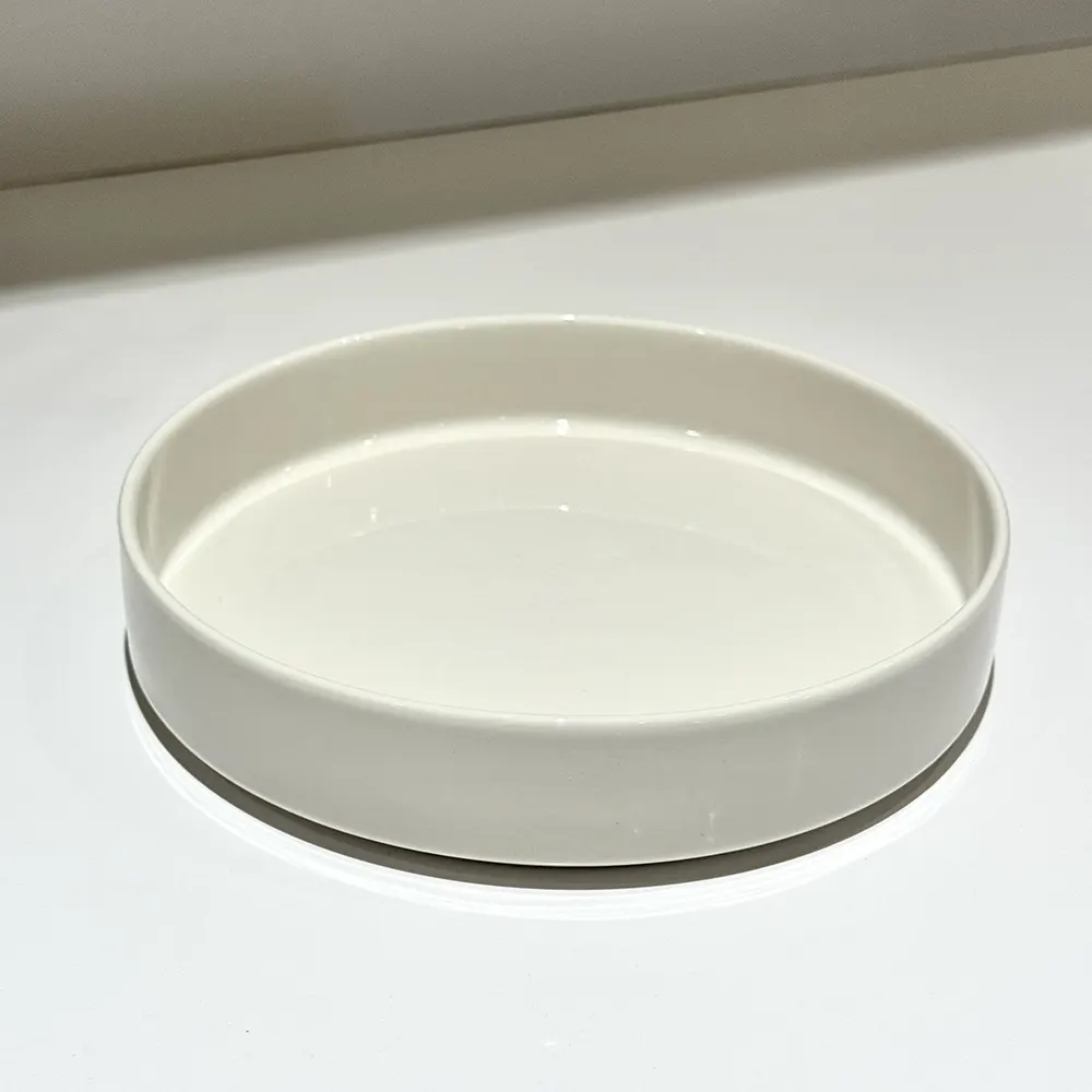 Realizzato in porcellana di altissima qualità, i nostri piattini decorativi si distinguono per la forma tonda essenziale e il bordo alto, studiato per valorizzare ogni creazione culinaria. La finitura, ispirata ai toni naturali della sabbia e delle rocce bianche scaldate dal sole, aggiunge un tocco elegante e contemporaneo alla tavola. La superficie liscia ed uniforme esalta i colori e le texture del cibo, rendendo i piattini ideali per antipasti scenografici, finger food, dolci o piccole portate gourmet. Il bordo verticale non è solo un dettaglio estetico, ma una scelta funzionale che assicura maggiore profondità e versatilità rispetto a un piatto piano. Perfetti da abbinare a servizi completi o da usare singolarmente come elemento di design, i piattini decorativi Scatti Sicily trasformano ogni mise en place in un’esperienza raffinata ed esclusiva.