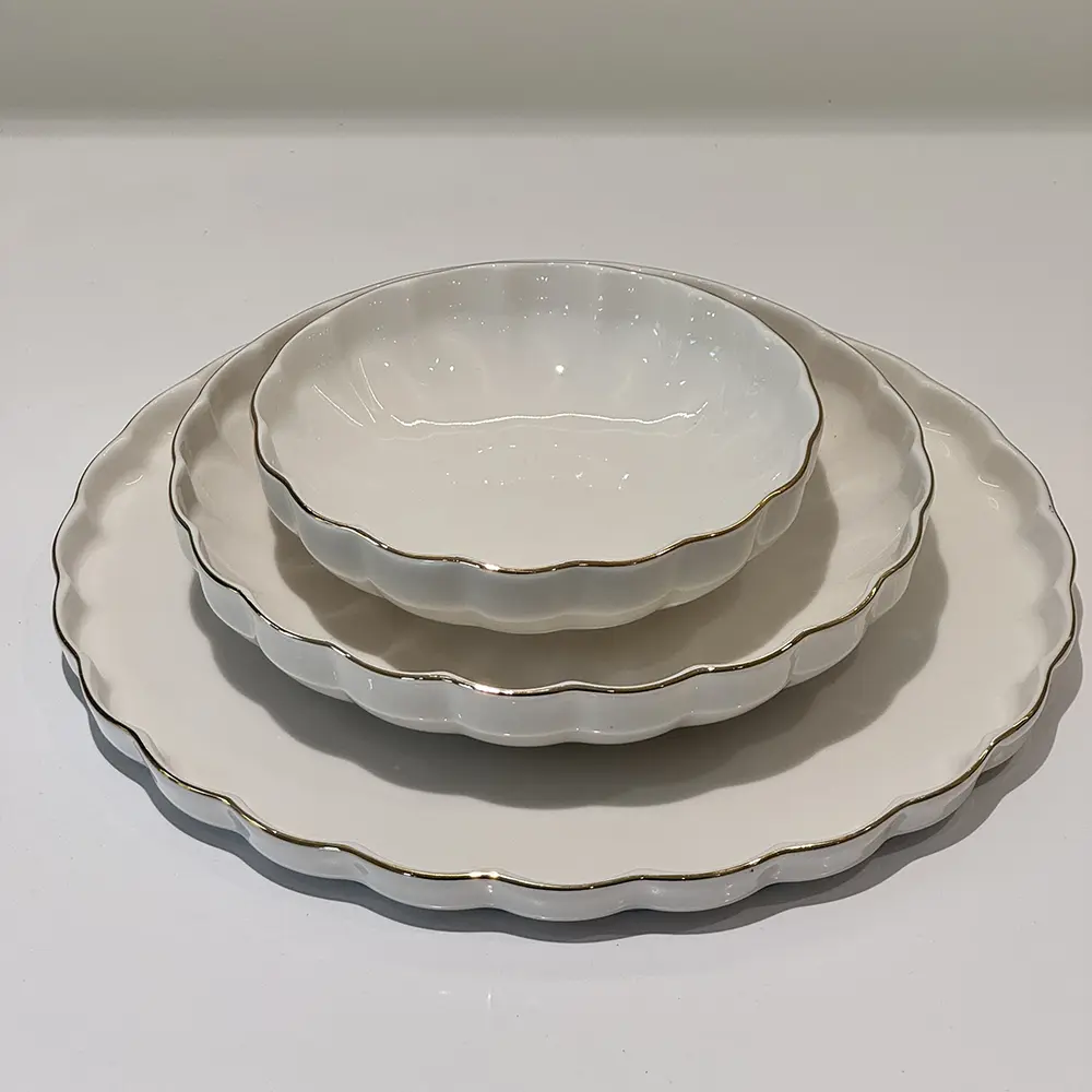 Il bordo ondulato con rifinitura dorata dona un tocco di classe unico, mentre la semplicità delle forme richiama la raffinatezza della tradizione siciliana reinterpretata in chiave moderna.